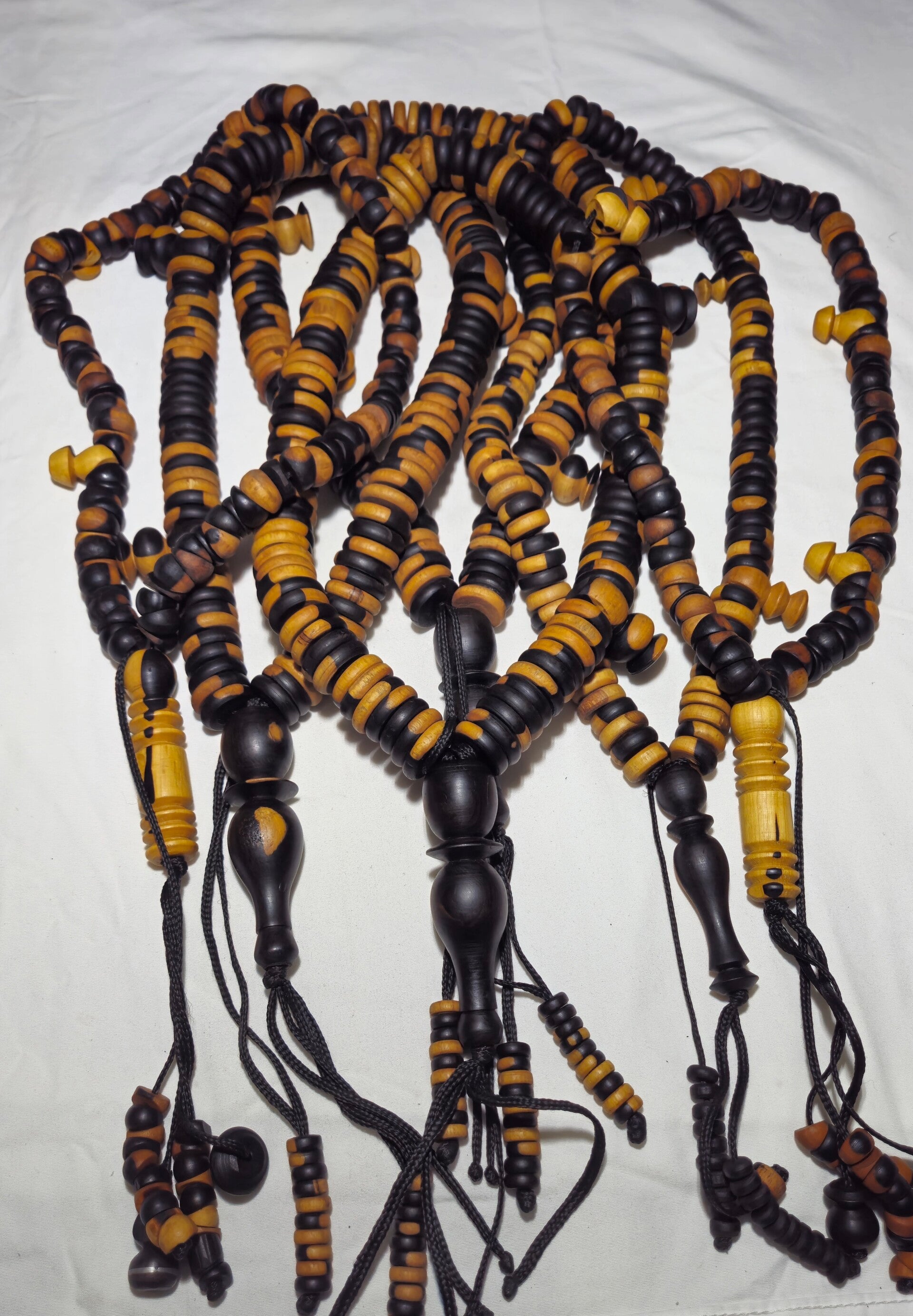 The collection is vast, ranging from the classic 100-bead sequence to diverse variations in size, count, and detail. Yet no matter the form, each set is united by what reviewers often describe as a “weight of craft” — you don’t just wear them; you feel them. The wood warms in the hand, the texture grounds the body, and the design carries a lineage that is cultural as much as it is spiritual.