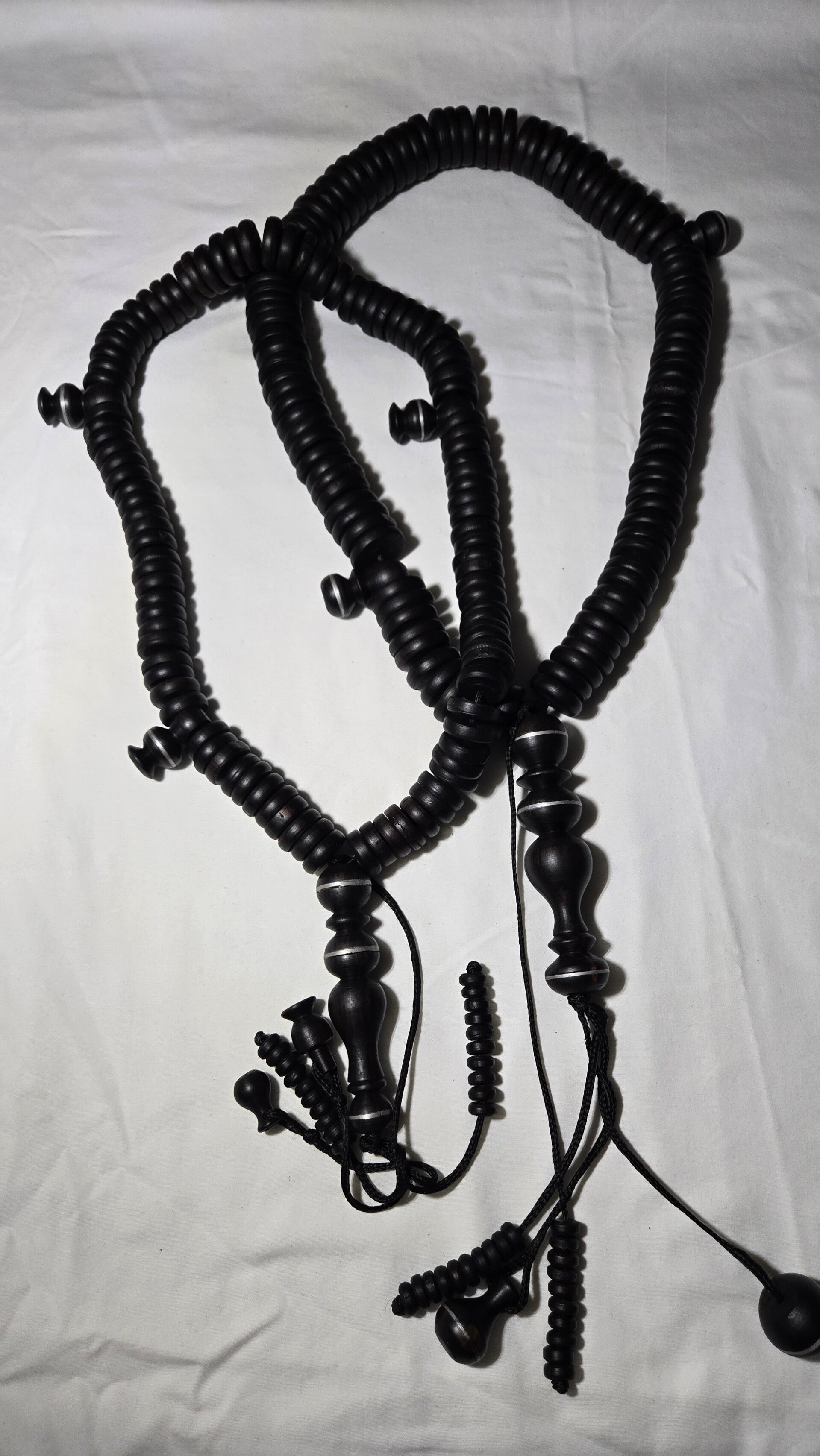 BayeFall Studio beads, handmade ebony beads, sacred wood beads, mystical ebony mala, artisan wood necklace, spiritual ebony beads, cultural mala necklace, natural ebony prayer beads, two tone ebony beads, all black ebony mala, African heritage beads, resonance mala necklace, protective ebony beads, handmade cultural jewelry, ebony wood spiritual beads.