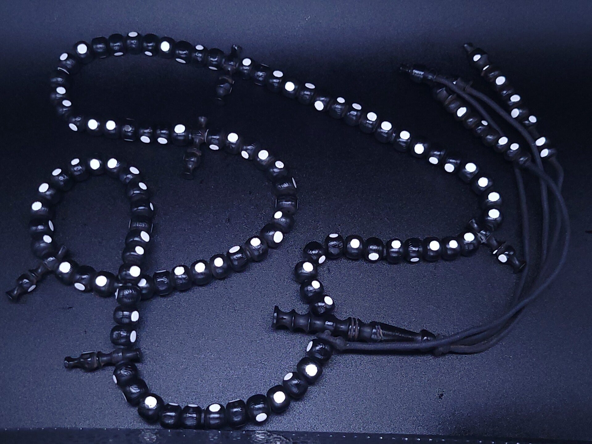 BayeFall Studio beads, handmade ebony beads, sacred wood beads, mystical ebony mala, artisan wood necklace, spiritual ebony beads, cultural mala necklace, natural ebony prayer beads, two tone ebony beads, all black ebony mala, African heritage beads, resonance mala necklace, protective ebony beads, handmade cultural jewelry, ebony wood spiritual beads.