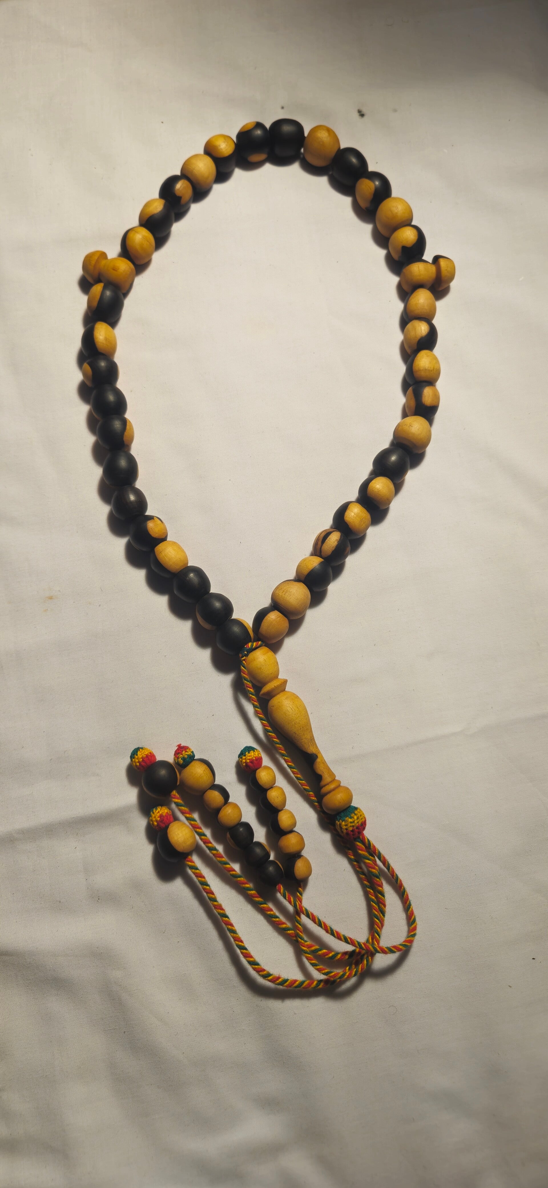 BayeFall Studio beads, handmade ebony beads, sacred wood beads, mystical ebony mala, artisan wood necklace, spiritual ebony beads, cultural mala necklace, natural ebony prayer beads, two tone ebony beads, all black ebony mala, African heritage beads, resonance mala necklace, protective ebony beads, handmade cultural jewelry, ebony wood spiritual beads.