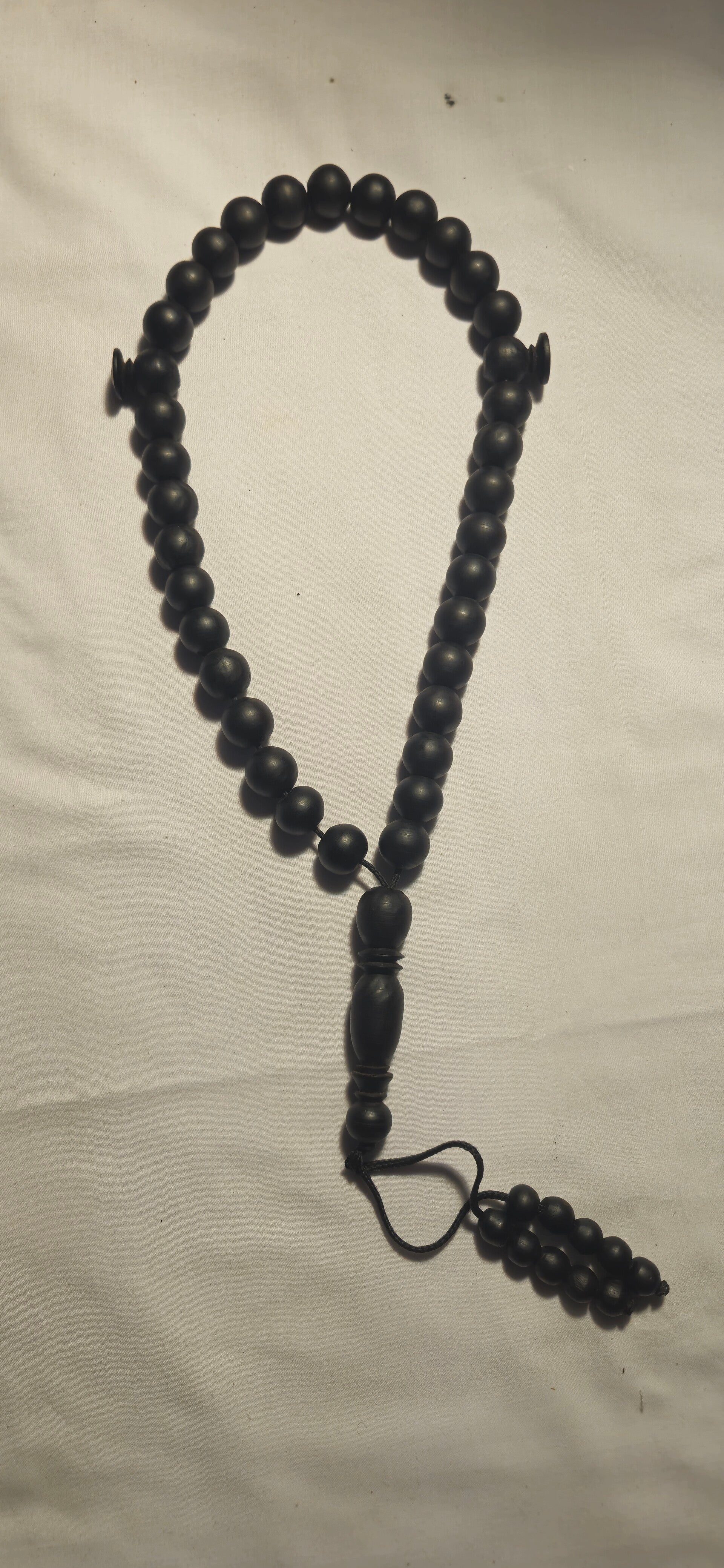 BayeFall Studio beads, handmade ebony beads, sacred wood beads, mystical ebony mala, artisan wood necklace, spiritual ebony beads, cultural mala necklace, natural ebony prayer beads, two tone ebony beads, all black ebony mala, African heritage beads, resonance mala necklace, protective ebony beads, handmade cultural jewelry, ebony wood spiritual beads.